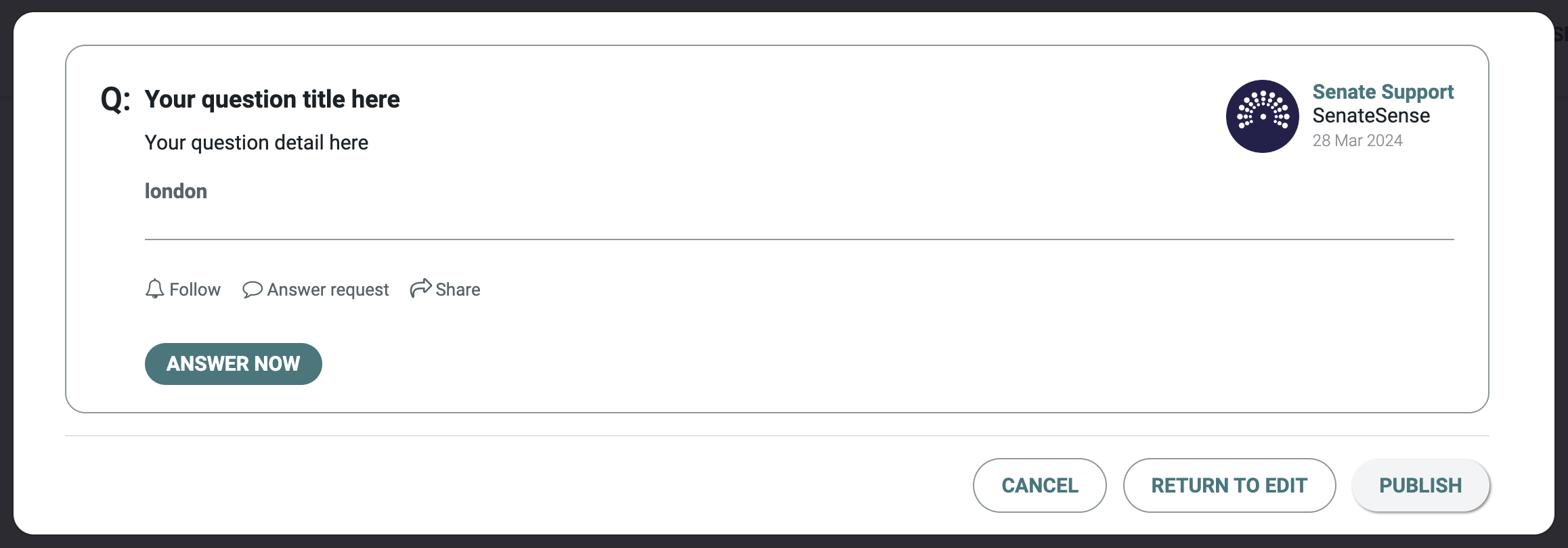 If you want to see how your question will look before posting it, click the 'Preview' button once you're finished composing.